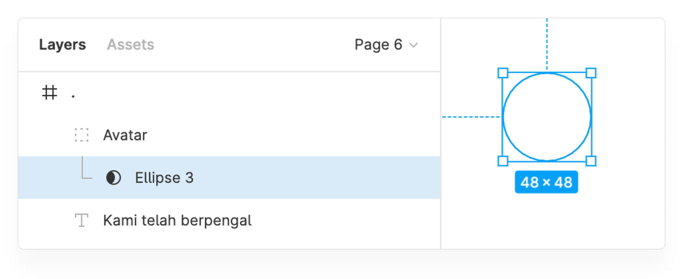 Lalu posisikan group nama keterangan berjarak 16px dari group avatar.